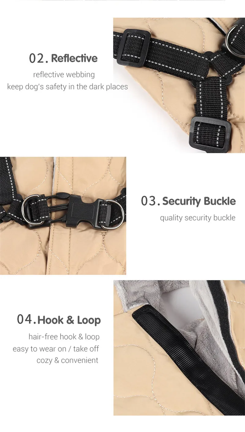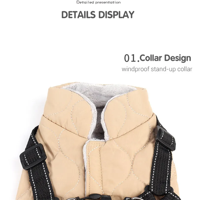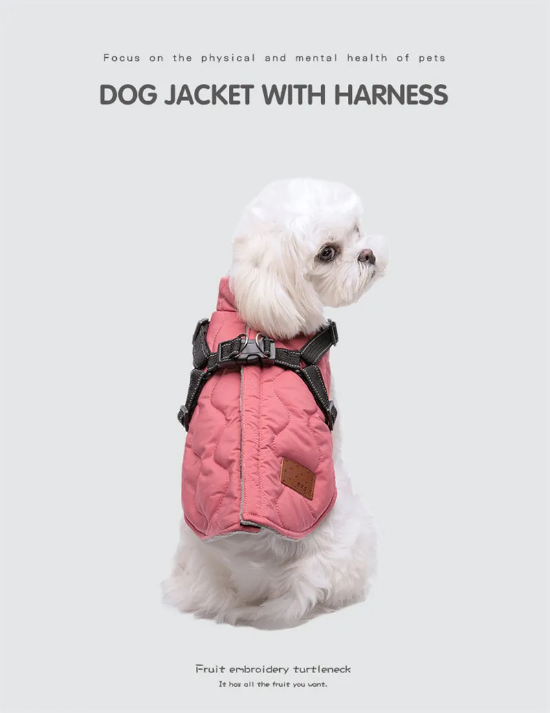 Manteau d'hiver pour chien avec harnais, chaud, rembourré, doublé en polaire douce, facile à enfiler, idéal pour les petits chiens et pour leur sécurité.