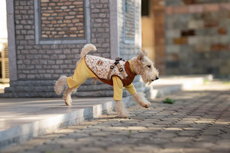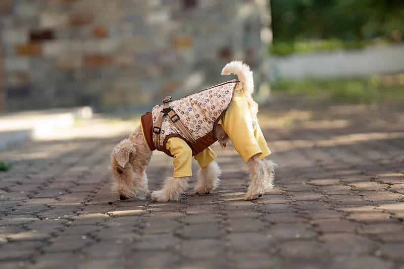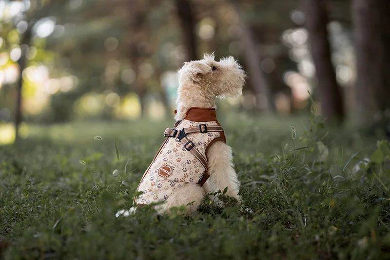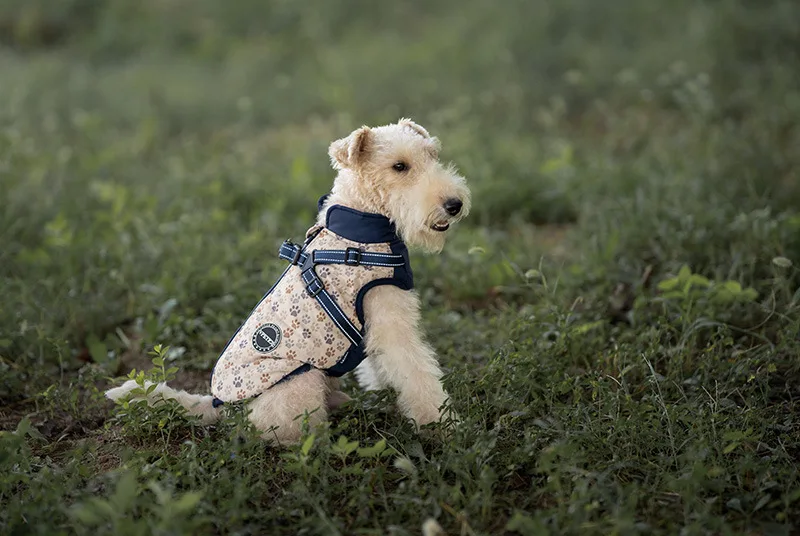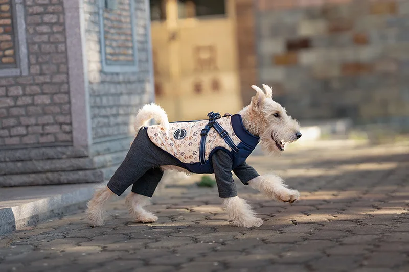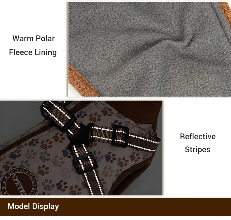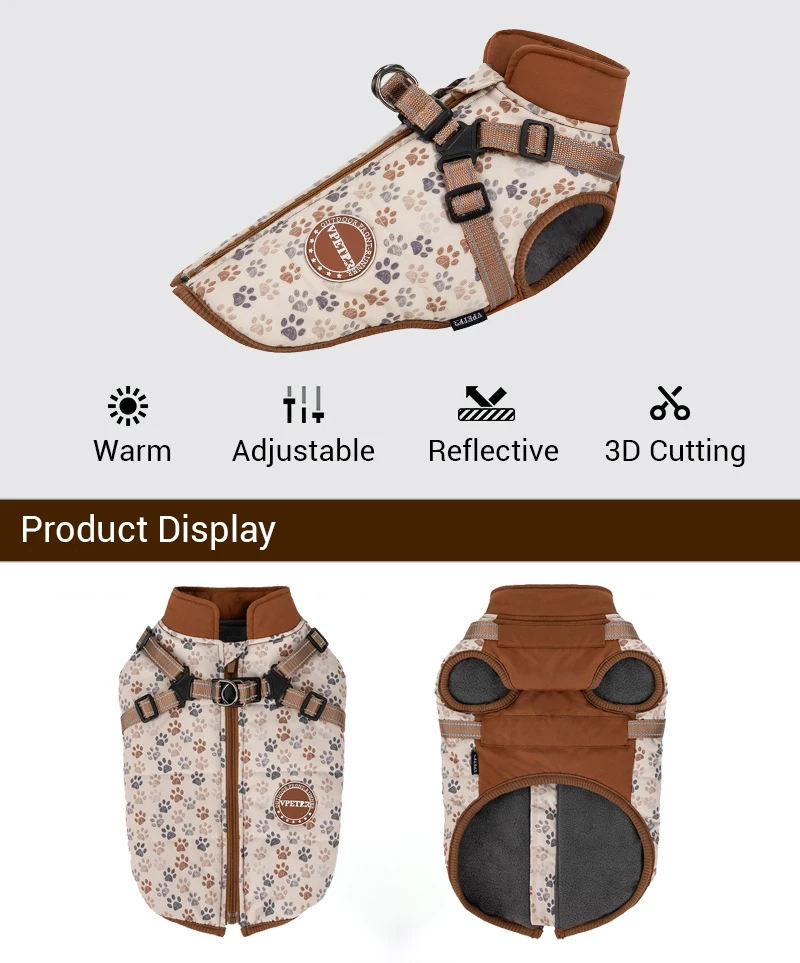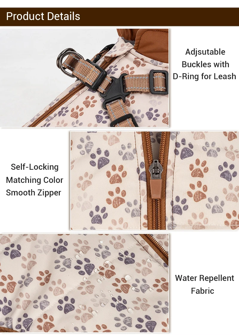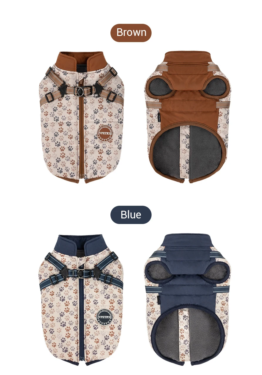 Manteau d'hiver pour chien avec harnais, imperméable et épais, pour petits chiens, imprimé pattes, réfléchissant, chaud.